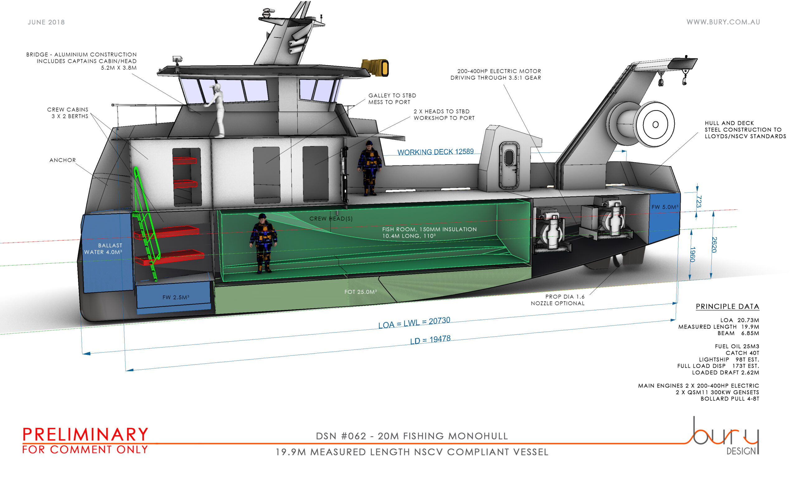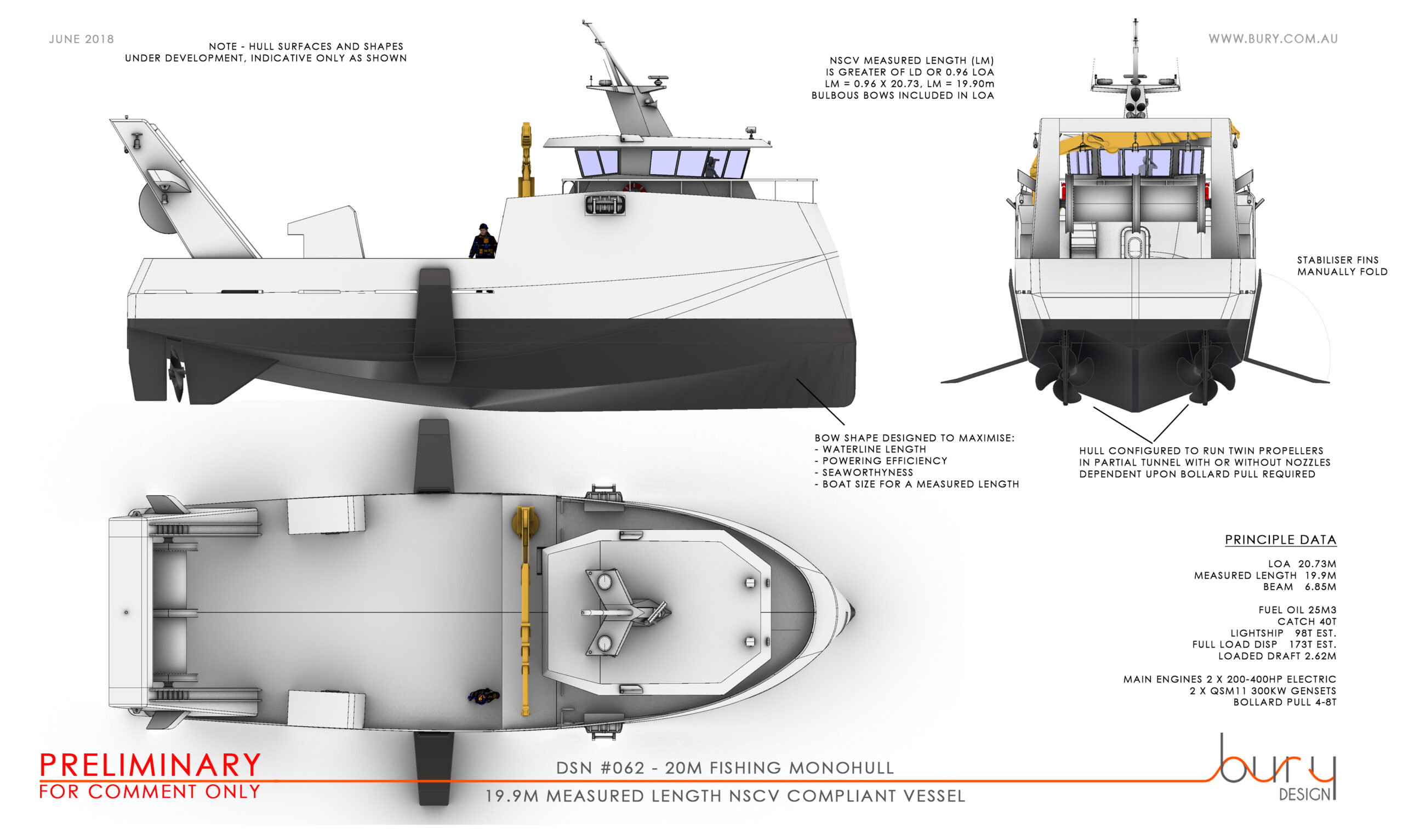 The concept is presented here to gather comments and expressions of interest from commercial operators interested in updating their existing vessel or adding a new boat to their current fleet. These vessels will be built in Thailand by an Australian owned yard with Australian build supervisors and surveyors to current AMSA/NSCV standards. The vessel build is currently being priced, contact the designer for further information on paul@bury.com.au.