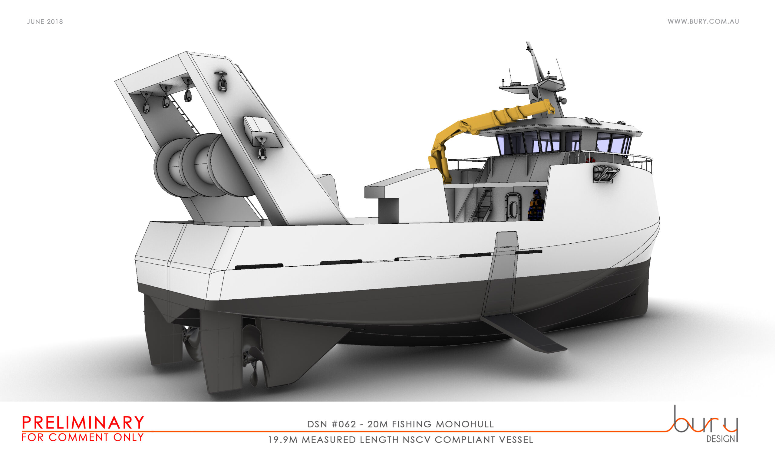 An innovative new design is being proposed for fishing vessels in Australia. Leading Australian boat designer Paul Bury has released concept drawings for a 20m fishing boat that can be configured to efficiently work different types of fishing gear. The design would be the largest Australian working vessel under a measured length of 20m.