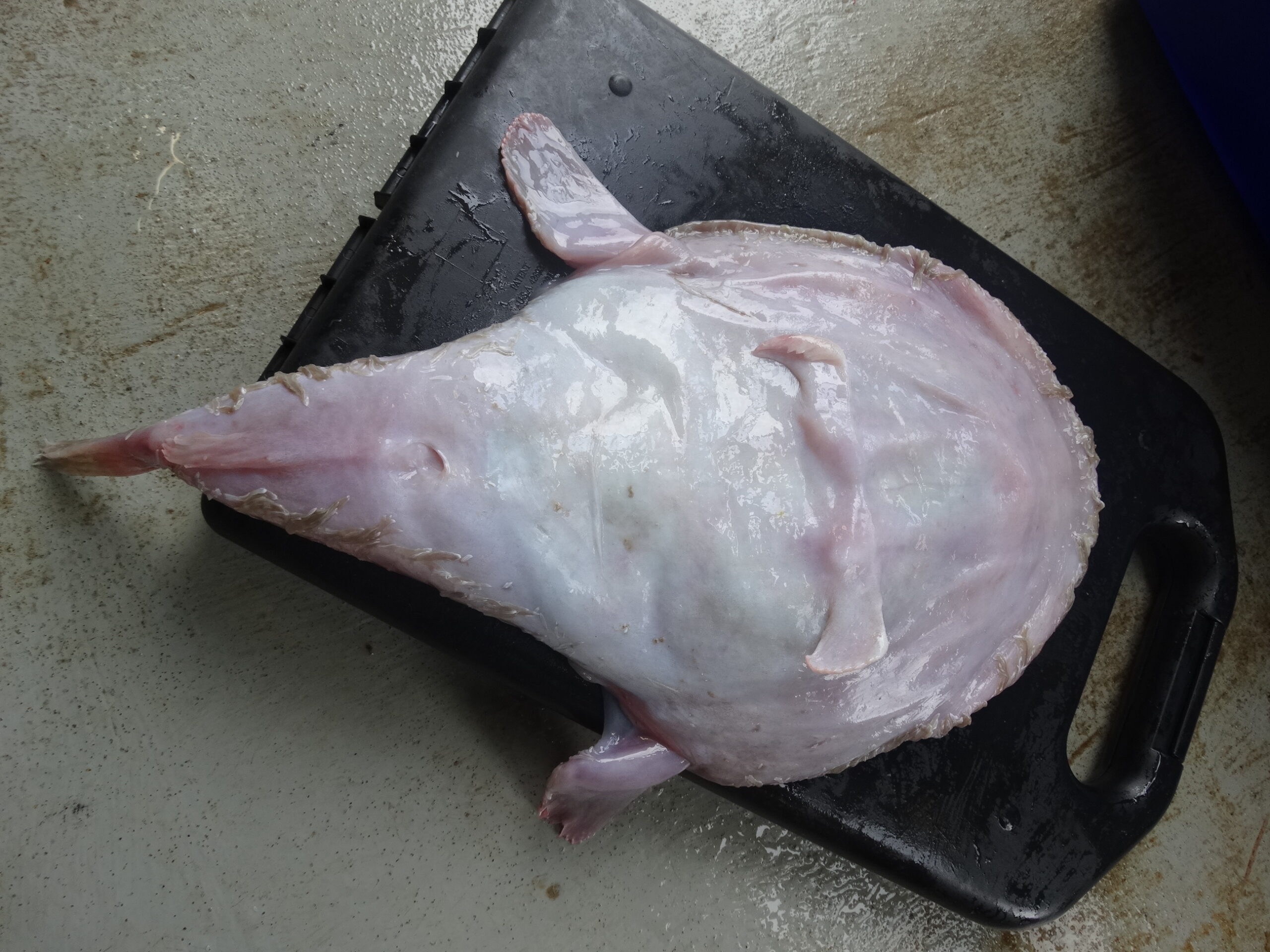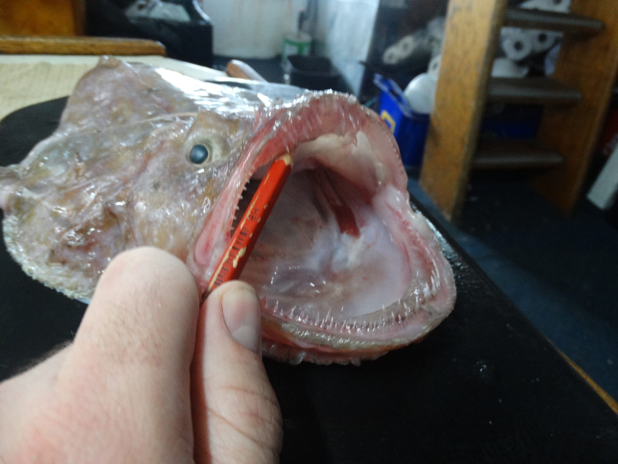 Like all anglerfishes, Endo’s Goosefish uses a specially adapted dorsal fin ray (known as an esca by scientists) as a fishing rod to lure smaller, inquisitive prey near to its gruesome mouth. You can guess what happens next. Watch this amazing video of a similar species in action: